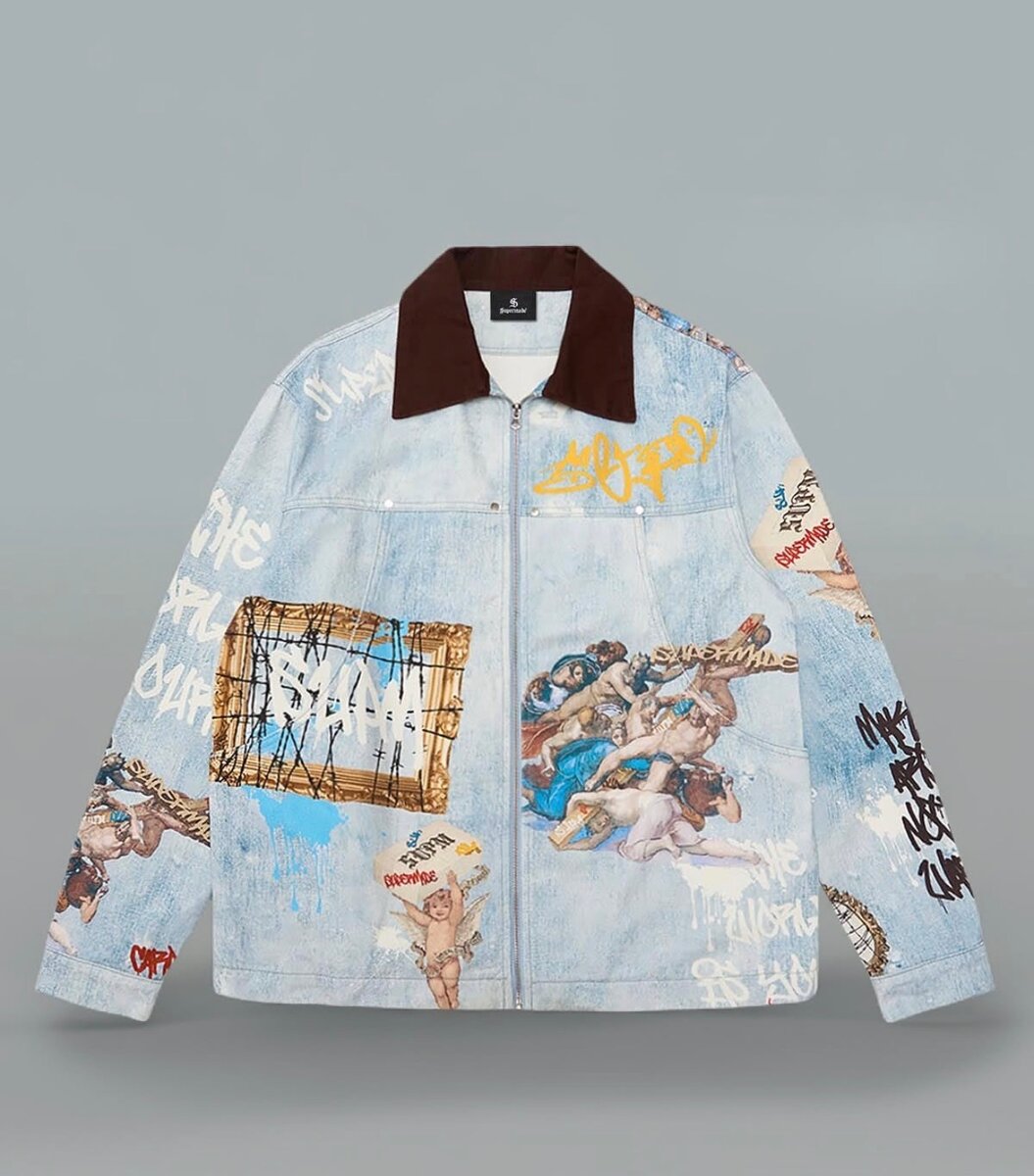 Démarquez-vous avec cette veste en jean graffiti art aux motifs artistiques uniques. Parfait pour les personnes avant-gardistes qui cherchent à faire une déclaration. Idéal pour les vêtements décontractés ou les tenues de style urbain.