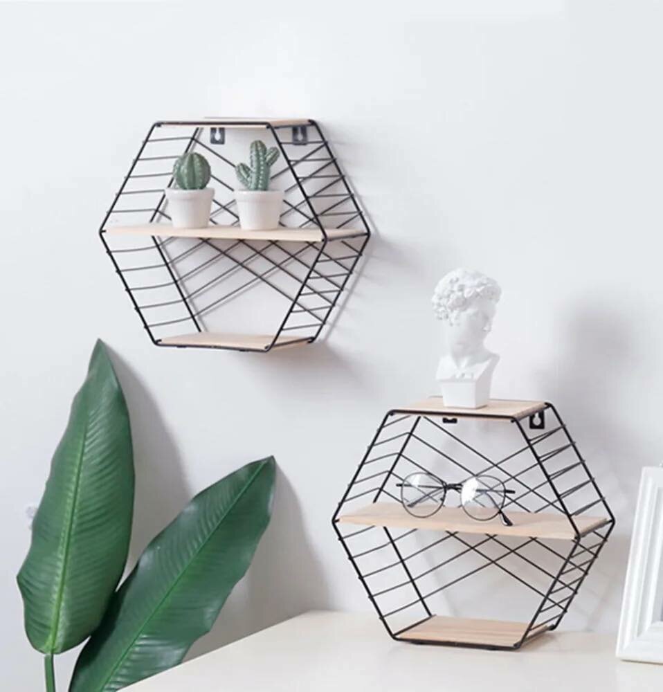 Étagère de rangement décoratif en fer et en bois pour décoration mural pour des pots de fleurs, présentoir décoratif, accessoires de salles de bain.