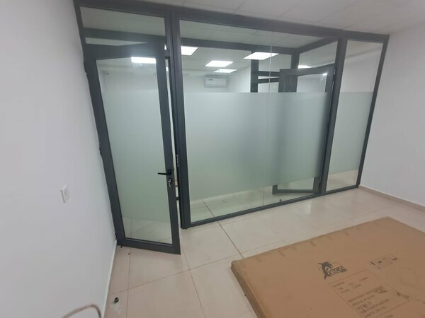 Grande cloison vitrée de bureau avec porte alu, parfaite pour open-space ou salle de réunion. Apporte luminosité et élégance, tout en assurant la discrétion entre espaces.