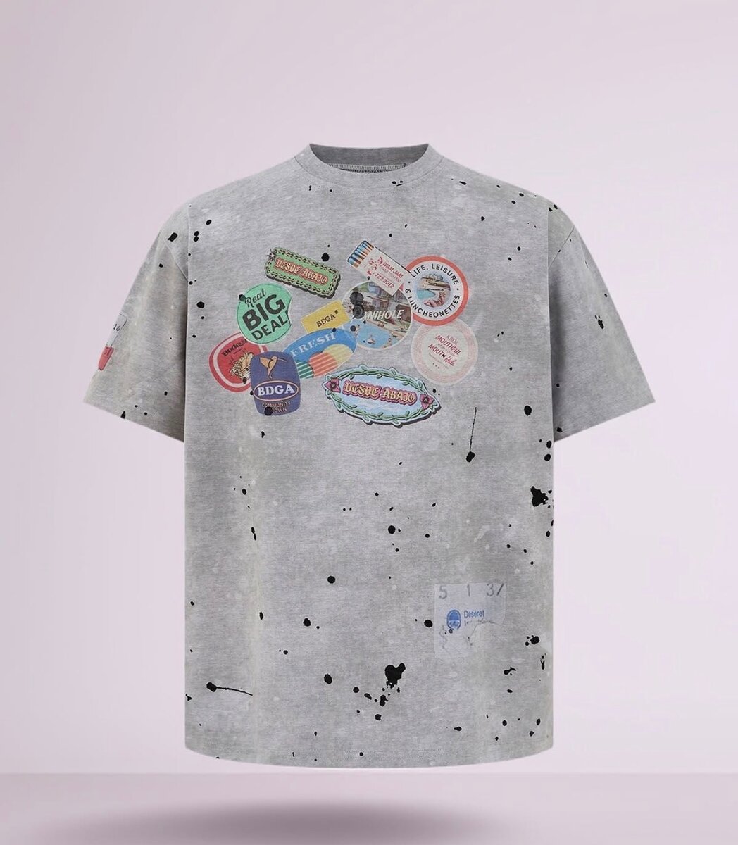 T-shirt graphique gris élégant avec des patchs vintage uniques. Fabriqué à partir d'un tissu doux et respirant pour un confort tout au long de la journée. Parfait pour les sorties décontractées, l'expression du style personnel et l'association avec un jean ou un short. Une pièce de déclaration indispensable pour un usage quotidien.