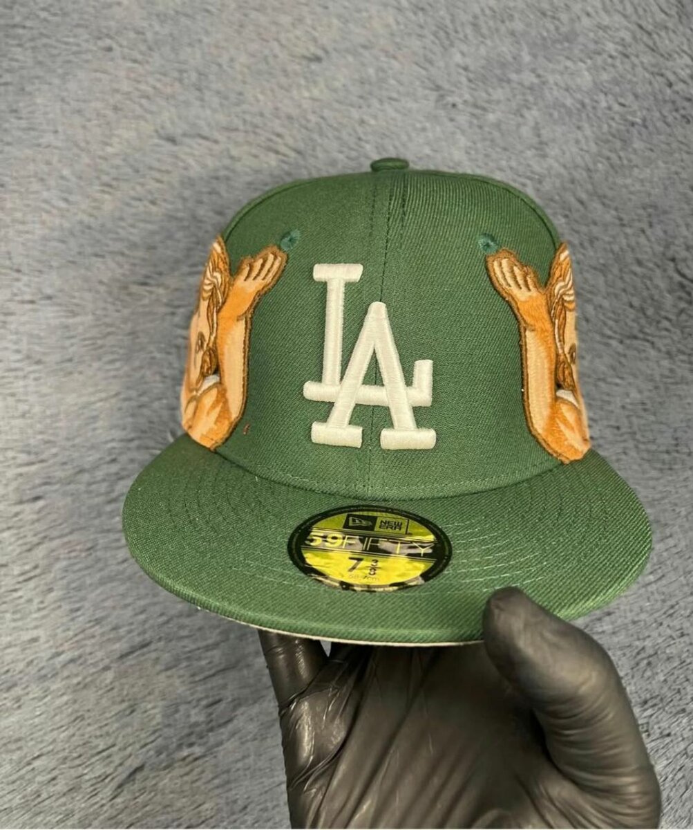 Elevate your style with this unique green cap featuring embroidered graphics and the iconic LA logo. Perfect for sports fans and fashion enthusiasts alike. Made from high-quality materials for durability and comfort, it's an ideal accessory for casual outings or game days. Stand out with its artistic design and showcase your love for LA.