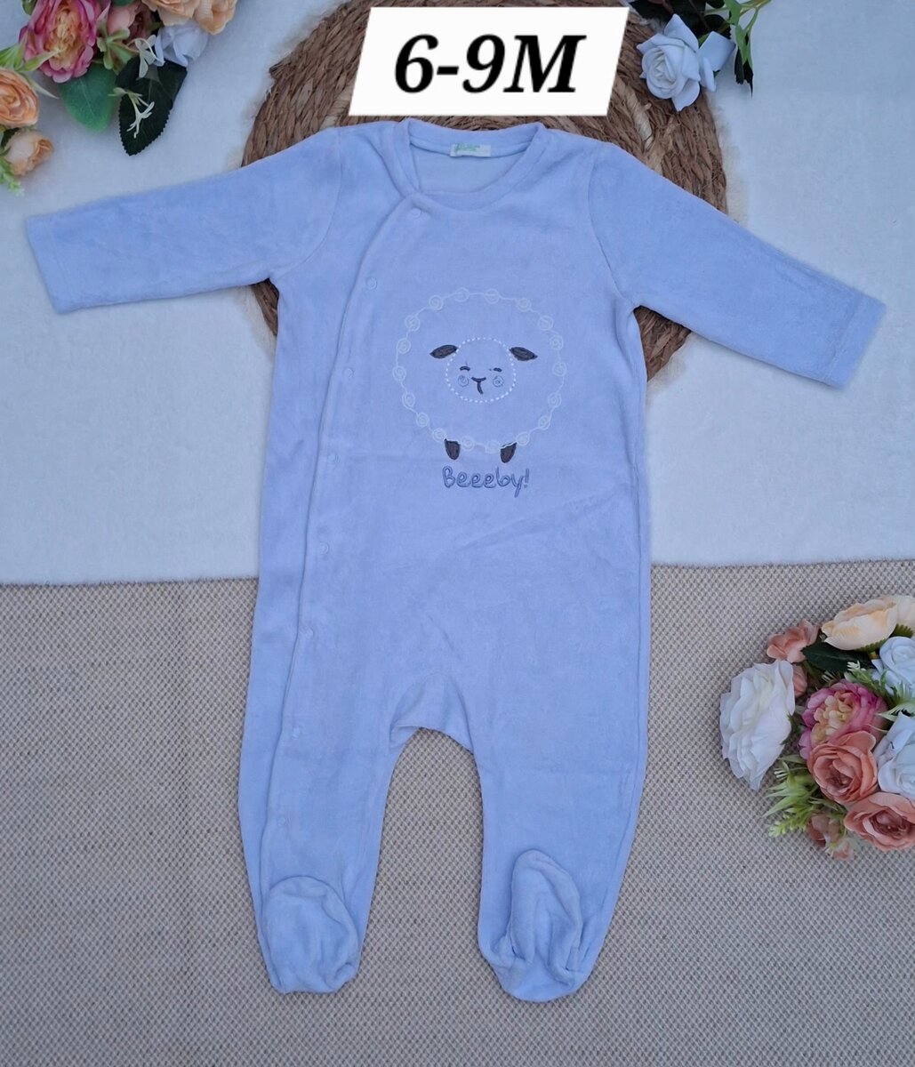 Adorable grenouillère bébé en peluche douce pour 6 à 9 mois en velours. Design mignon avec motif mouton, idéal pour garder bébé confortable et au chaud. Parfait pour les nuits paisibles.