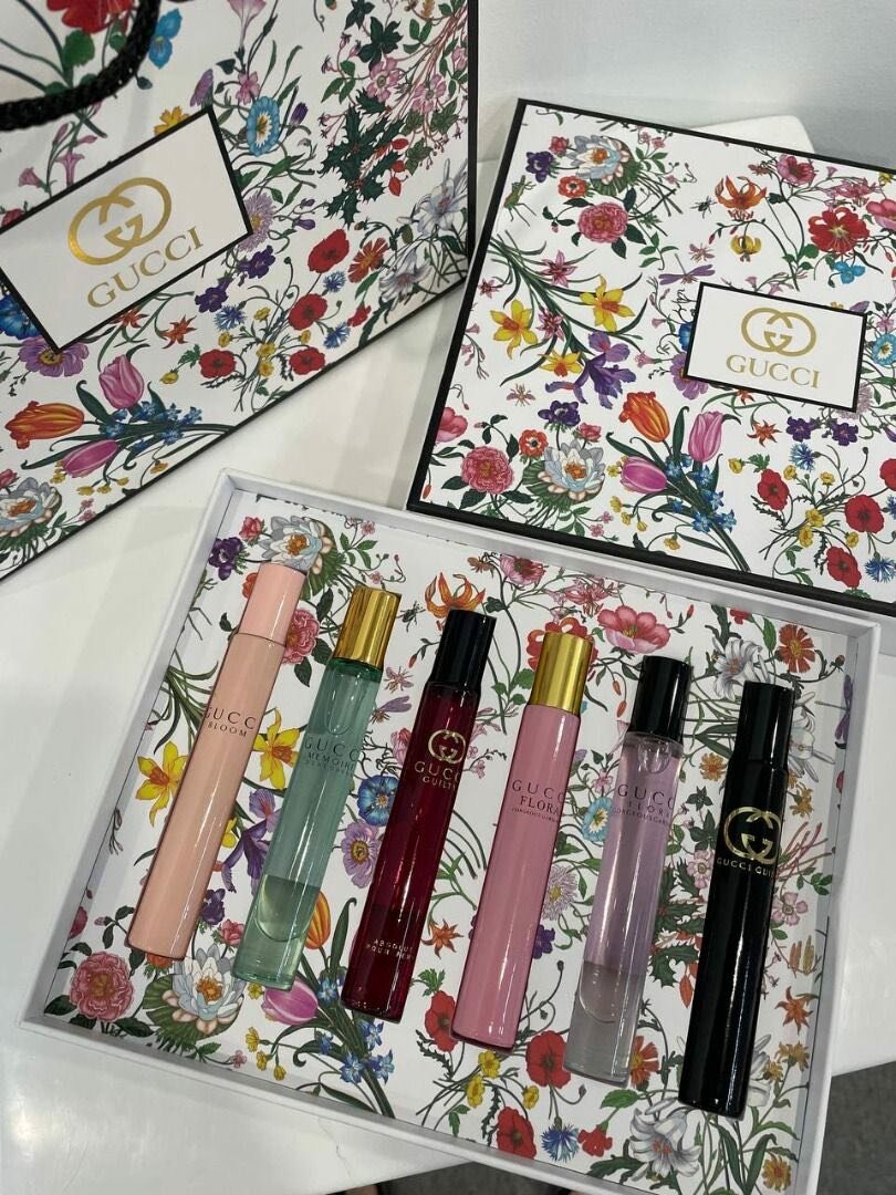 Découvrez le set parfum Gucci Mémoire d'une Odeur et Flora Gorgeous Gardenia, une expérience olfactive iconique. Parfait pour les amateurs de parfums sophistiqués, ce coffret est idéal pour offrir ou se faire plaisir. Chaque parfum est présenté dans un format compact idéal pour le sac à main.