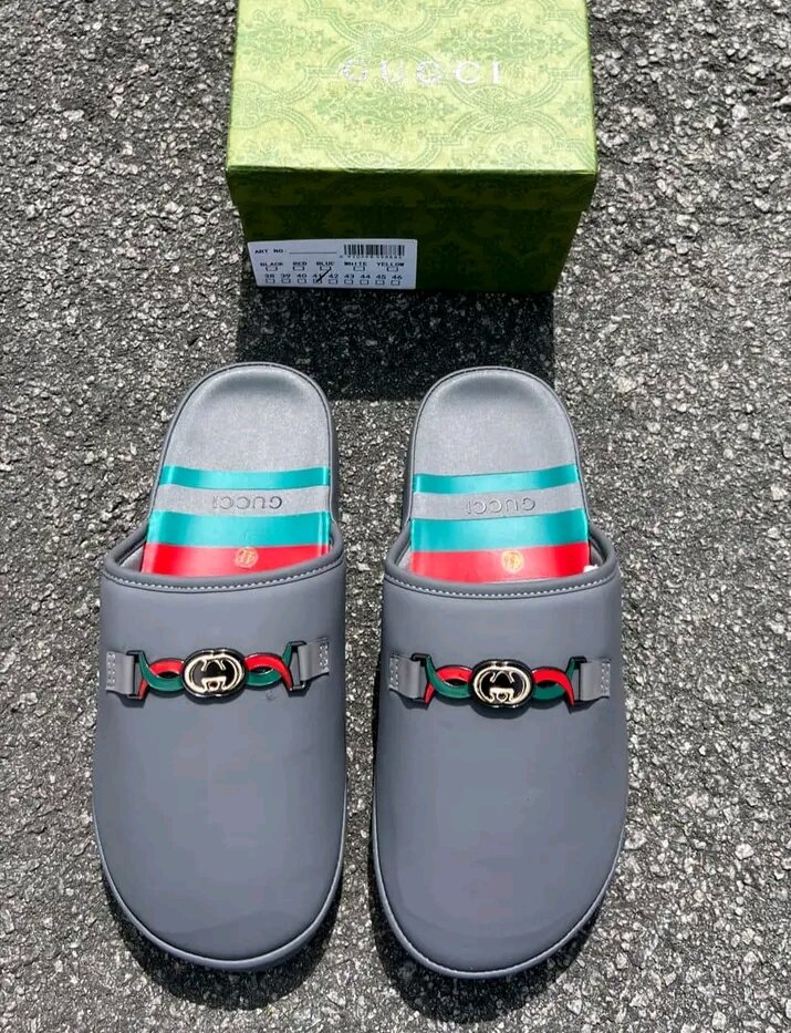 Découvrez ces slides Gucci gris élégantes, dotées d'un design distinctif avec des bandes colorées à l'intérieur et un motif iconique sur le dessus. Conçues pour le confort et le style, ces chaussures sont idéales pour une utilisation décontractée. Fabriquées avec une attention aux détails, elles ajoutent une touche de luxe à votre tenue.