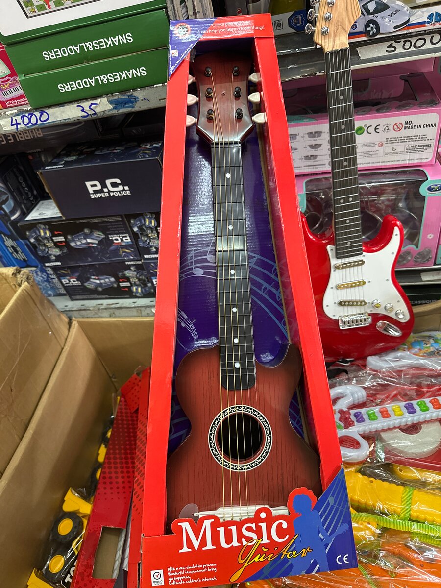 Guitare enfant idéale pour éveiller les petits musiciens. Design coloré et attrayant, parfait pour le développement musical des enfants. Encourage la créativité et l'apprentissage à travers le jeu musical ludique. Excellent cadeau pour les jeunes mélomanes.