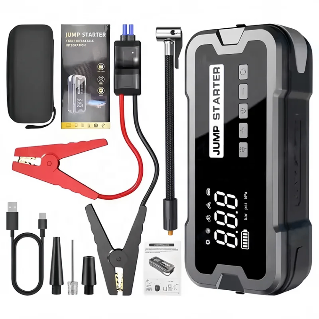 Démarreur de voiture portable 24000mAh 4000A 12V, batterie externe, pompe à air, gonfleur de pneus, pawerbank, écran numérique, lumière LED 150W.
