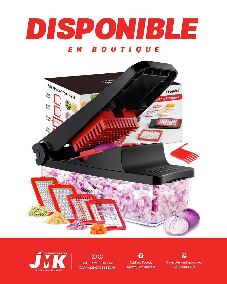 Découvrez le hachoir à légumes Geedel, idéal pour couper rapidement et facilement vos légumes préférés. Avec ses lames interchangeables en acier inoxydable, préparez des salades fraîches ou des garnitures en un clin d'œil. Pratique pour toute cuisine!