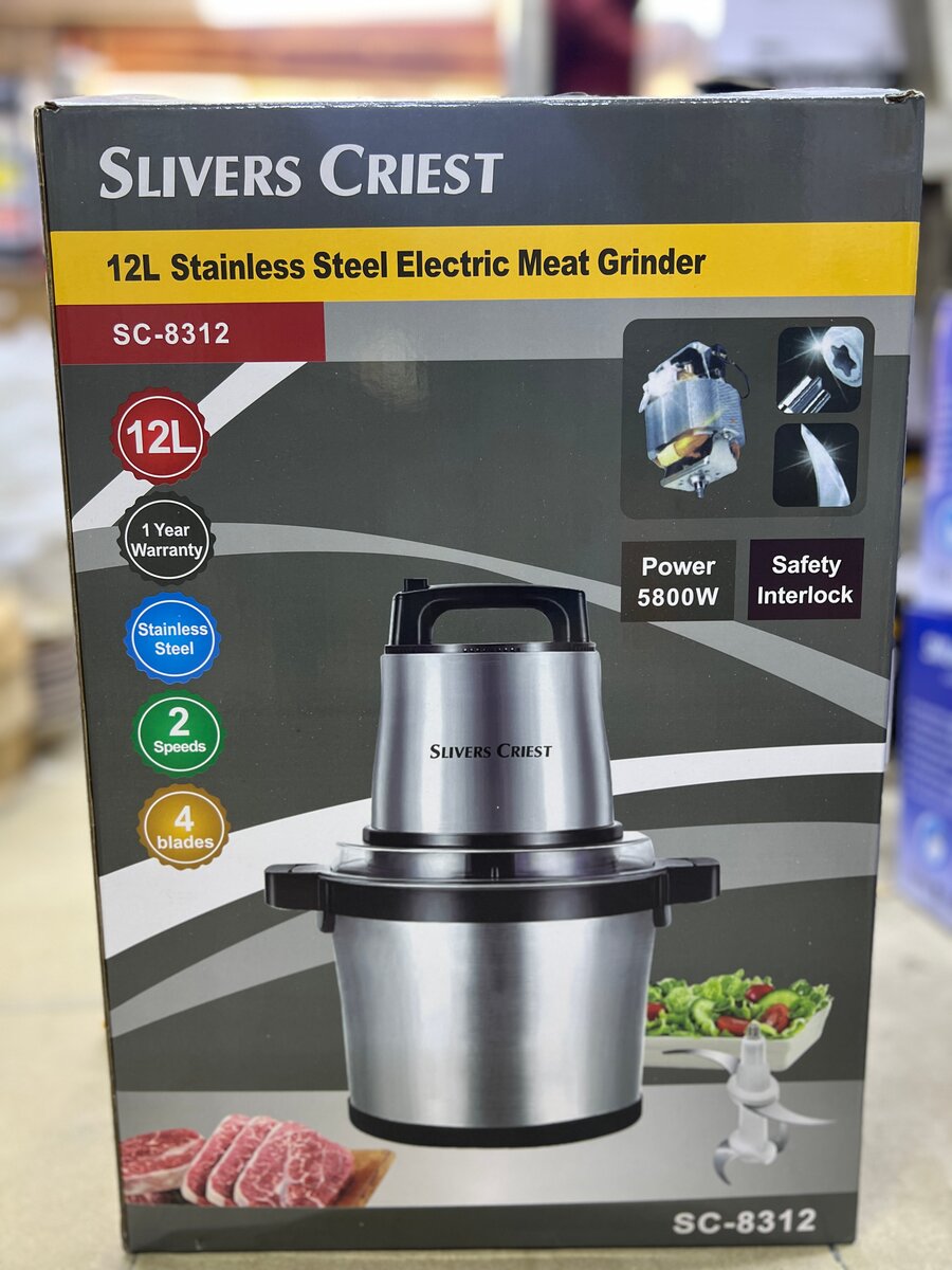 Découvrez le hachoir à viande électrique 12L en acier inoxydable de Slivers Criest. Puissance de 5800W, 2 vitesses, idéal pour viandes fraîches. Sécurité intégrée, facile à utiliser. Parfait pour votre cuisine!