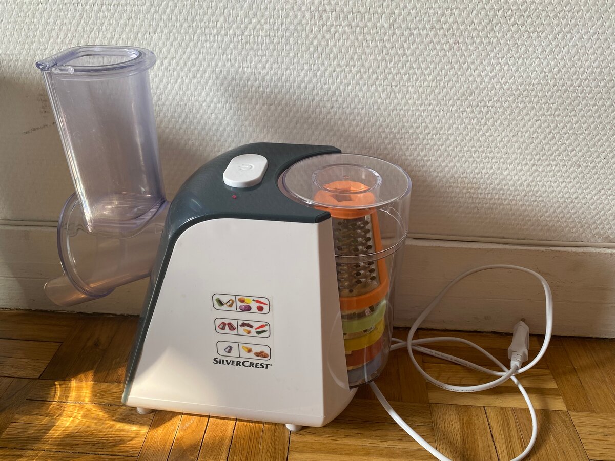 Hachoir électrique SilverCrest avec 4 lames interchangeables pour une préparation facile et rapide. Compact et puissant, cet appareil est idéal pour hacher les légumes, les herbes et la viande.