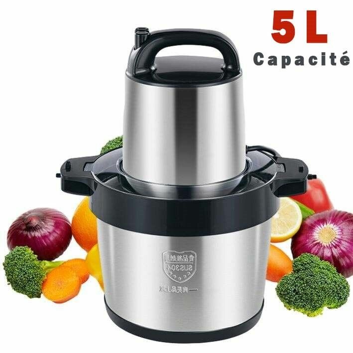 Hachoir Électrique, Hachoir à Viande Electrique Multifonction 5L Bol en Acier Inox, 2 Vitesse 4 Lames pour Viande,Légumes,Fruits
