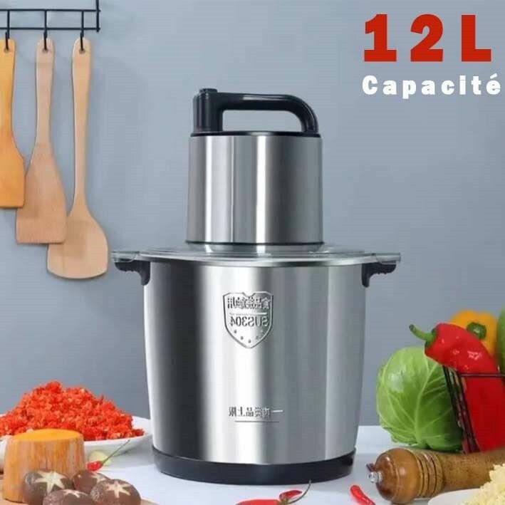Hachoir Électrique, Hachoir à Viande Electrique Multifonction 12L Bol en Acier Inox,2 Vitesse 4 Lames pour Viande,Légumes,Fruits