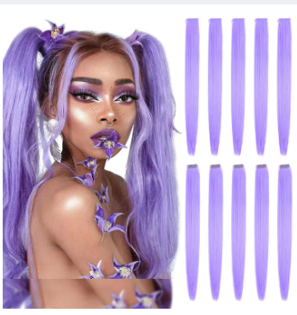 Hair Extensions Clip In Neon Hair Extension Hairpieces Party Highlights Synthetic Halloween Hair Accessories Colored Straight Extension Clip Ins for Kids Girls 22" 1pcs