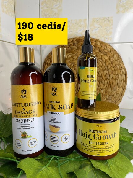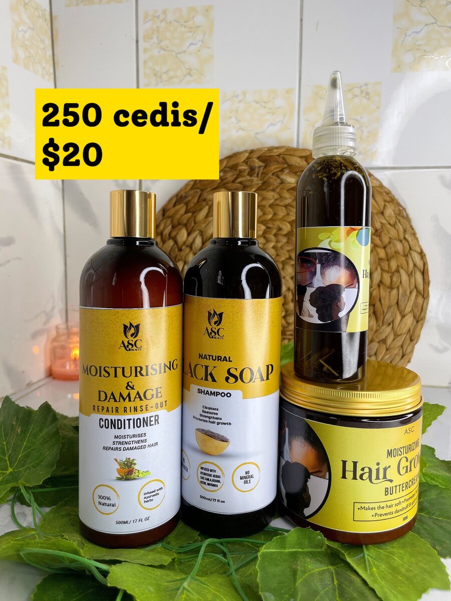 These products contain natural ingredients and Ayurvedic herbs thats promote hair growth, treats dandruff, breakage and thickens the hair. This set contains shampoo, conditioner, big growth oil and big size buttercream