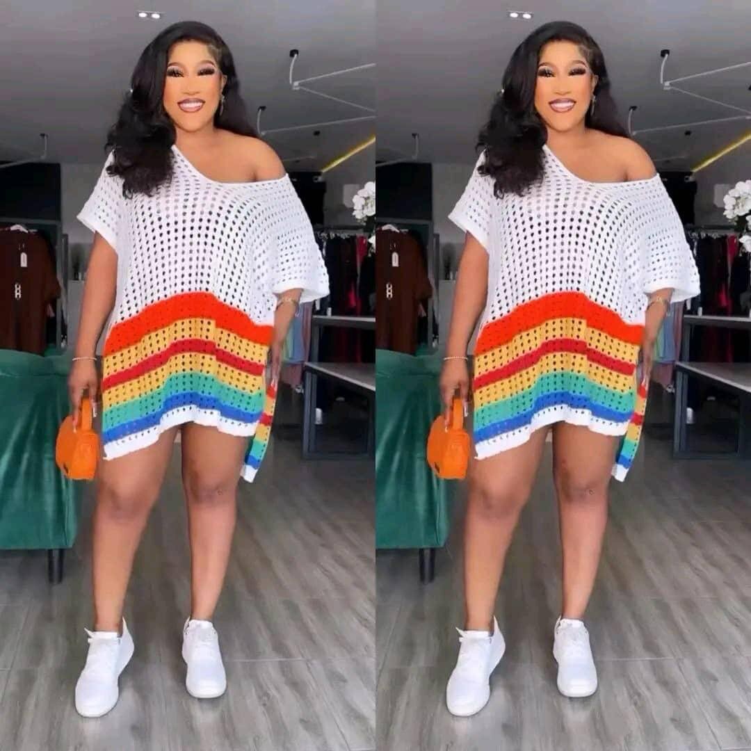 Robe oversize en crochet arc-en-ciel