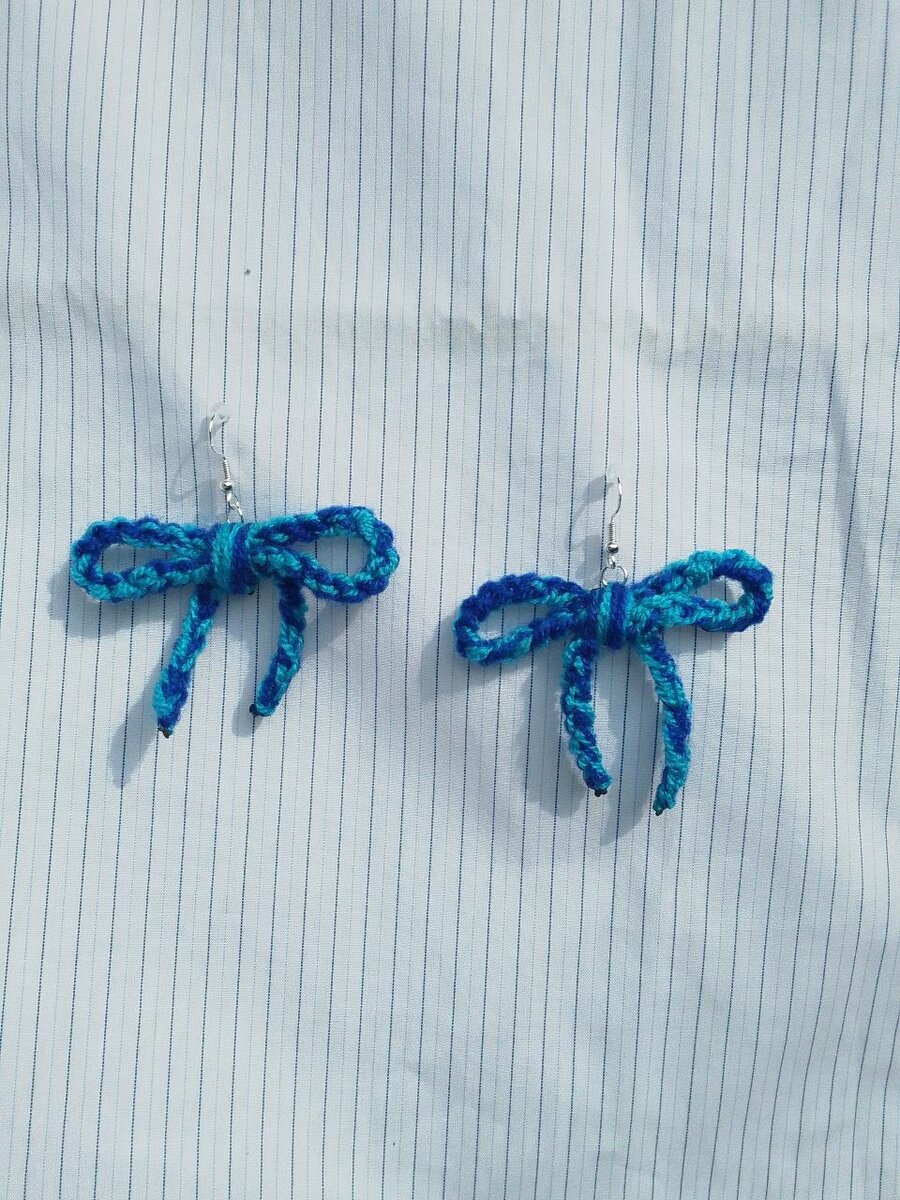 Add a playful touch to your style with these handcrafted yarn bow earrings. Lightweight and colorful, they're perfect for casual wear, parties, or gifting. Unique and trendy!