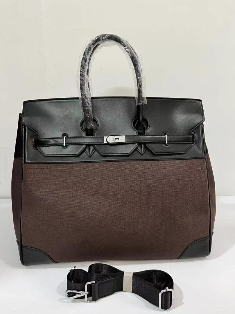 The image showcases a stylish black handbag with a structured, elegant design. It features multiple angles of the bag, including front, back, side, and an open view displaying the spacious interior.