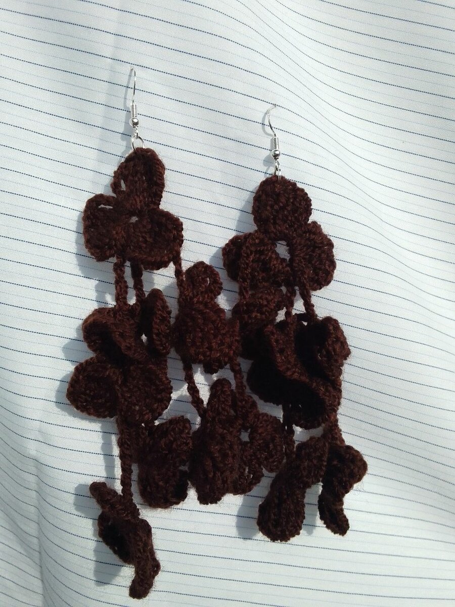 Elegant handmade crochet earrings with a floral design. Lightweight and perfect for adding a unique touch to any outfit. Ideal for casual or formal settings. Made with high-quality yarn for durability.