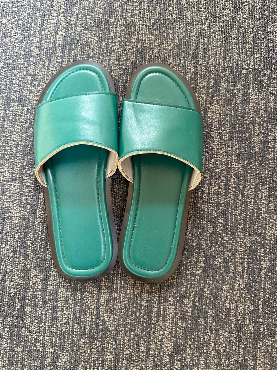 Handmade green leather slides