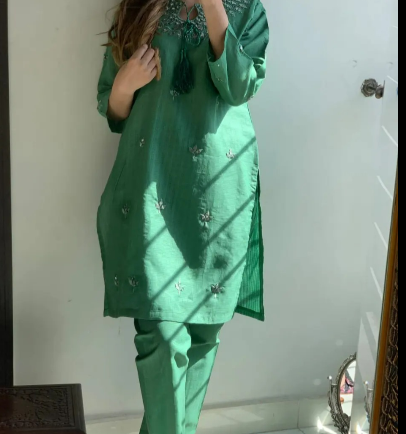 Article Name: *ARZ0O* *MEDIUM & LARGE SIZE* CHEST: 21(M) 23(L) LENGTH: 37 38 *Stuff: Doria Cotton Embroidery* Handmade Mirror Embroidery Suit *Handmade EMB Shirt-Trouser*
