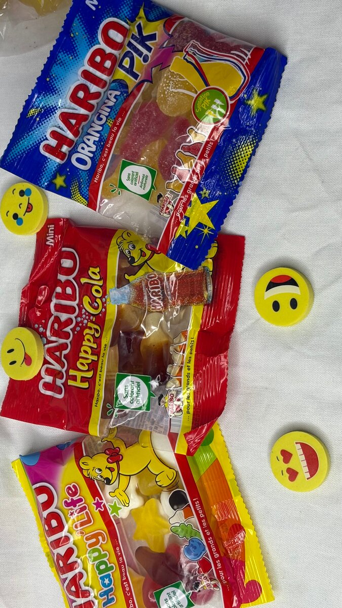 Découvrez la délicieuse gamme de bonbons Haribo, incluant Happy Cola et Orangina Pik. Parfait pour partager entre amis ou en famille!