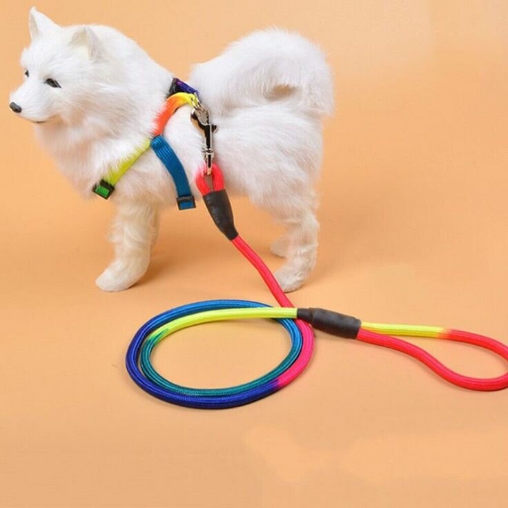 Offrez à votre chien style et confort avec cet ensemble harnais et laisse multicolore. Fabriqué avec des matériaux robustes, il est parfait pour les promenades sécurisées. Idéal pour les petits chiens tendance.