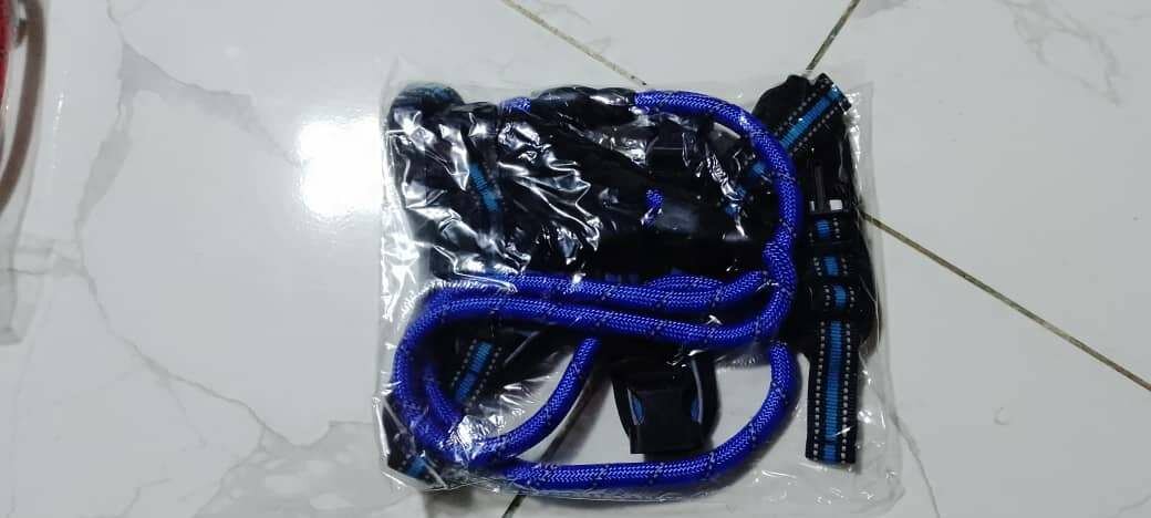 Ensemble harnais et laisse pour chien, idéal pour vos promenades. Confortable et ajustable, il assure la sécurité de votre animal. Fabriqué en matériau robuste et durable pour résister aux usages quotidiens. Convient pour toutes les races de chiens. Parfait pour les sorties en plein air et les entraînements.
