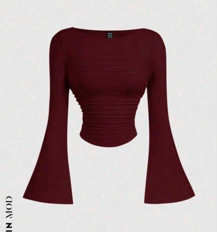 Ce haut à manches longues cloche bordeaux est un choix élégant et tendance pour toute occasion. Conçu pour mettre en valeur la silhouette, il offre un style chic et moderne grâce à son design froncé. Parfait pour une sortie décontractée ou une soirée, ce vêtement est un must-have pour les amateurs de mode. Combinez-le avec un pantalon ou une jupe pour un look complet.