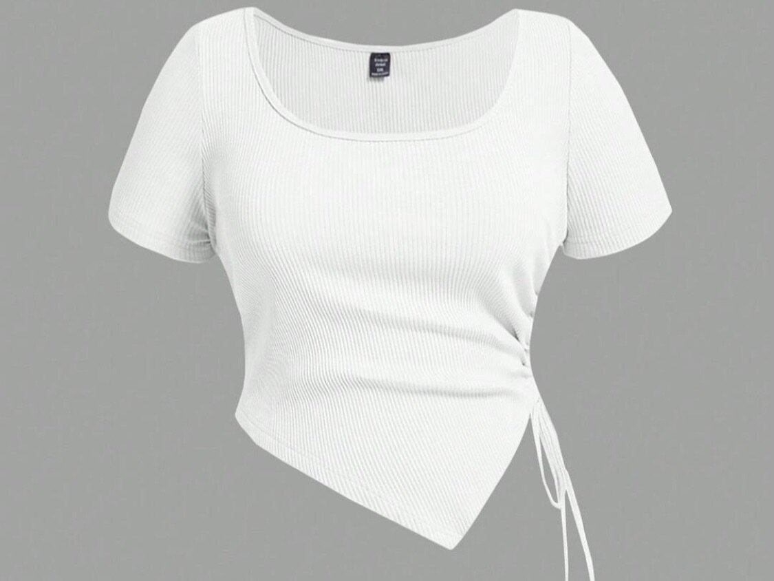 Optez pour ce haut blanc asymétrique au style moderne et élégant. Confectionné avec un tissu côtelé confortable, il présente un design original avec un laçage sur le côté. Idéal pour un look à la fois chic et décontracté, ce haut s'associe facilement à un jean ou une jupe pour toutes vos sorties.