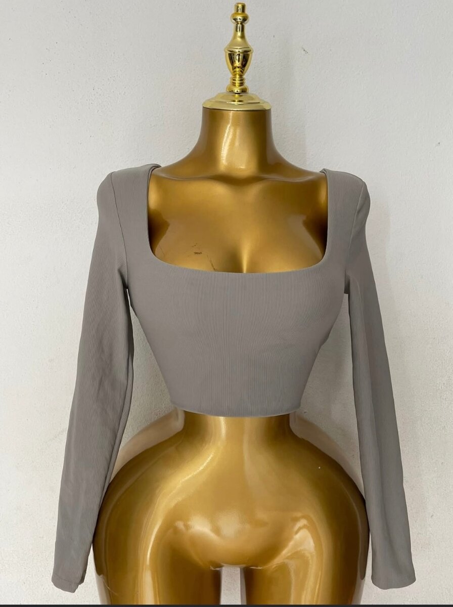 Découvrez ce haut court gris à manches longues, parfait pour un look quotidien chic et moderne. Fabriqué avec des matériaux confortables, il se marie facilement avec n'importe quel bas pour un style polyvalent. Idéal pour les sorties ou les occasions décontractées.