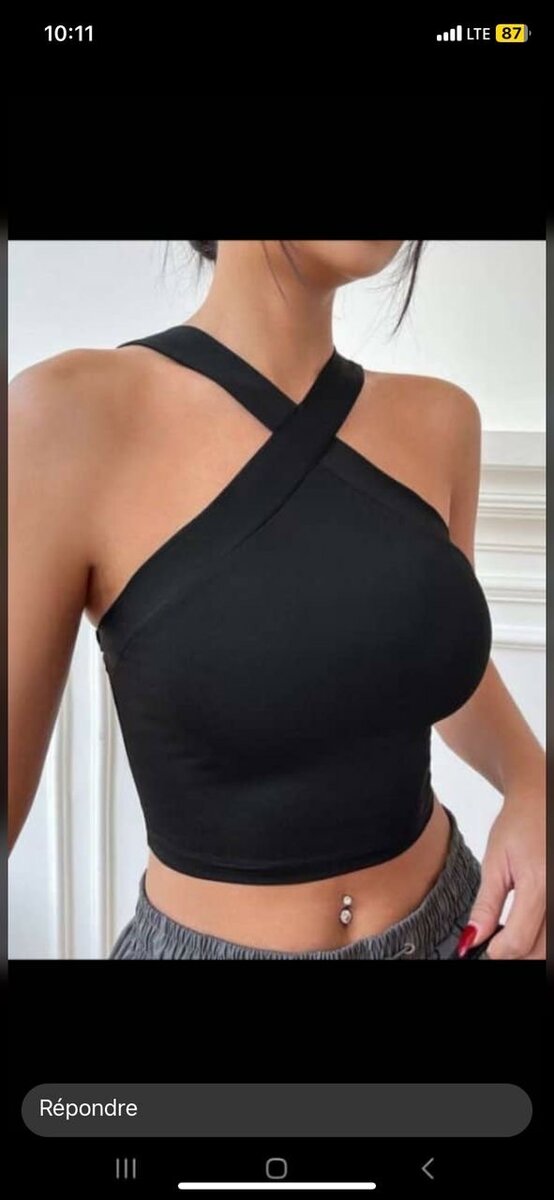 Un haut noir croisé tendance, parfait pour une tenue chic et moderne. Idéal pour soirées, sorties ou looks décontractés. Matière confortable et coupe flatteuse pour un style unique.