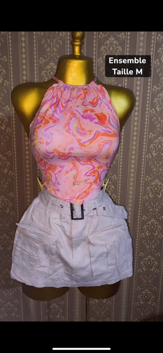 Découvrez ce haut vibrant à motif marbré, parfait pour un look estival éclatant. Grâce à sa coupe évasée et sa taille ajustable à lacets, il assure confort et style. Idéal pour les sorties en ville ou les soirées en bord de mer, ce top deviendra votre favori de la saison. Taille M disponible.