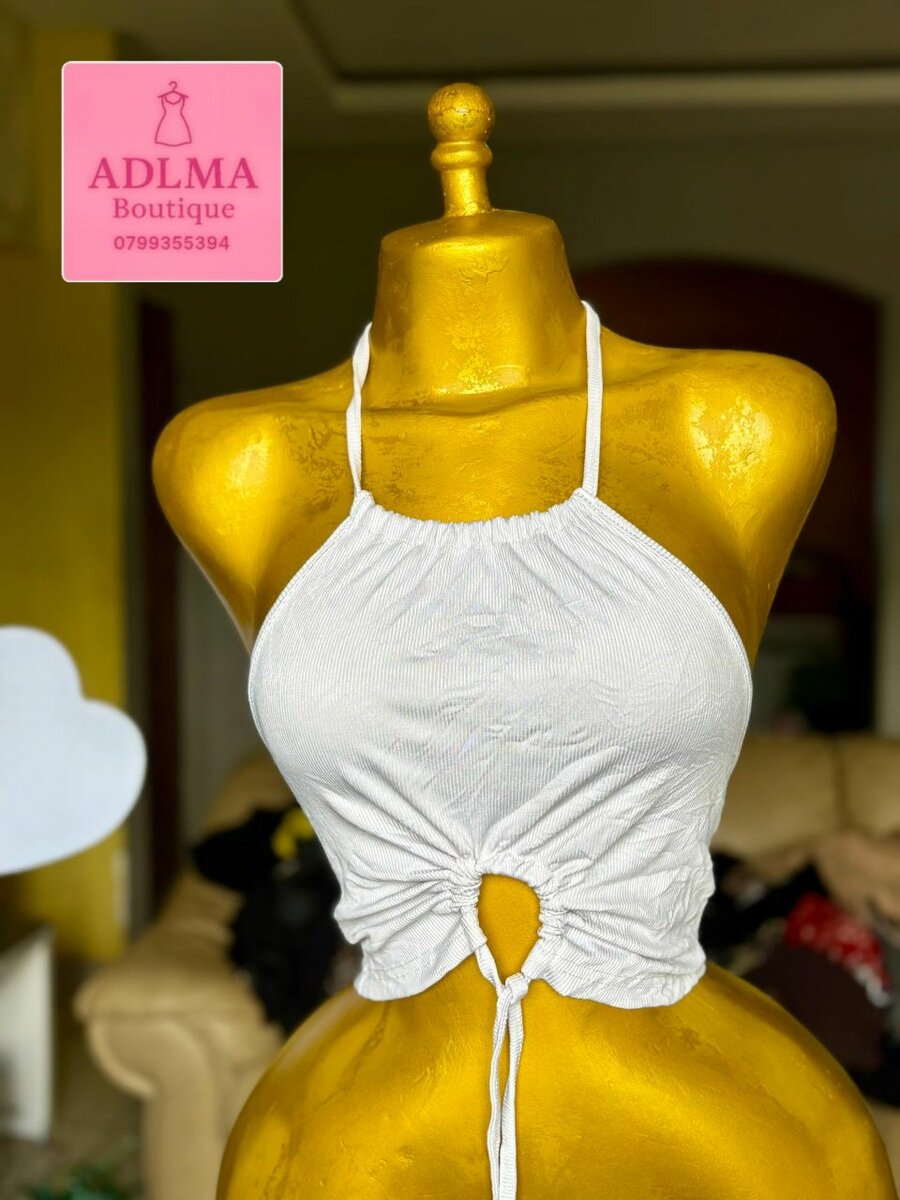 Découvrez ce haut dos nu blanc, parfait pour un look chic et estival. Sa conception échancrée met en valeur vos épaules tandis que le lien ajustable à la taille ajoute une touche unique. Idéal pour des sorties décontractées ou des soirées entre amies, ce haut est votre nouvel indispensable de l'été.