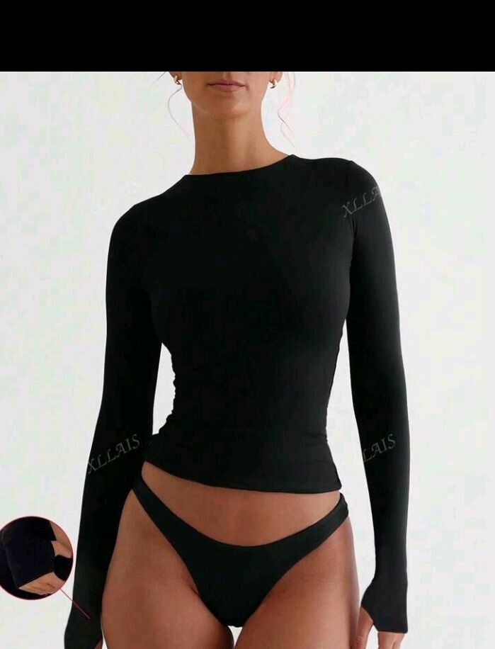 Découvrez ce haut noir à manches longues, idéal pour un look élégant et moderne. Confectionné dans un tissu doux et extensible, il épouse parfaitement votre silhouette. Parfait pour un usage quotidien ou une soirée chic, ce haut polyvalent s'associe facilement avec tous vos vêtements préférés. Un must-have pour votre garde-robe!