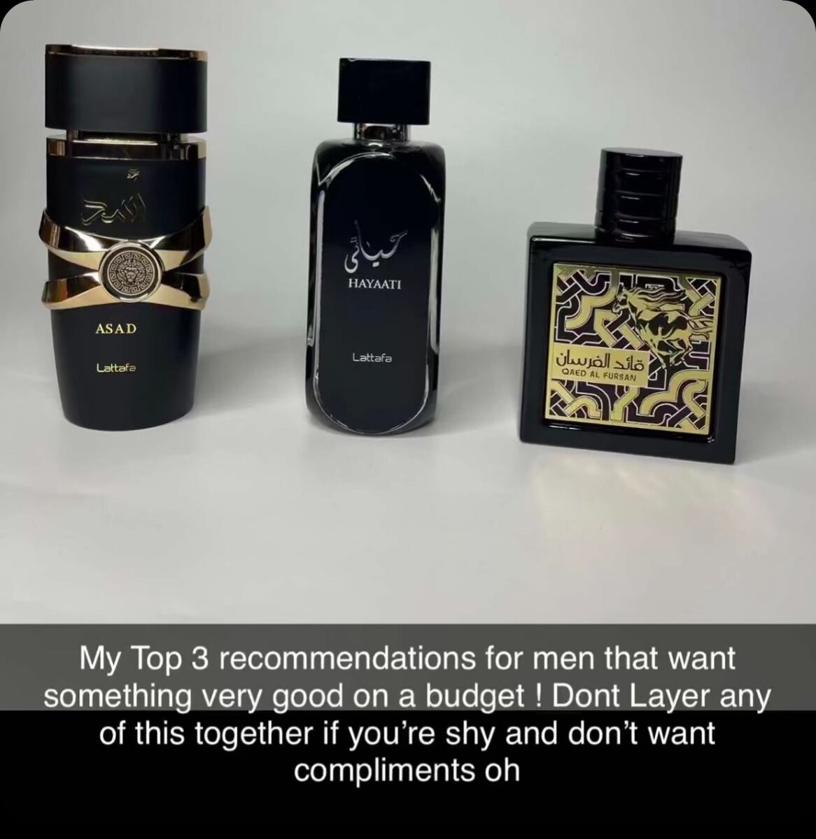 Hayaati , Al fursan & Asad by Lattafa( 900gh for all )