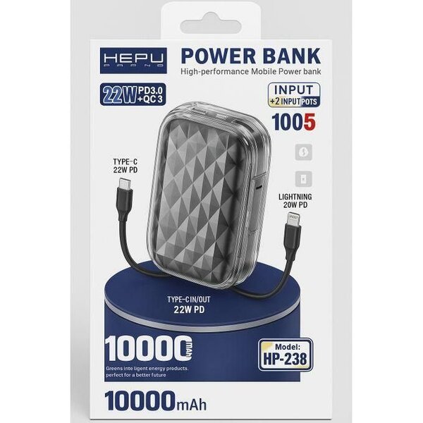 Profitez d'une charge rapide et fiable avec la batterie externe Hepu de 30000mAh. Parfait pour les voyages ou l'usage quotidien, il offre 4 ports USB pour une compatibilité étendue. Idéal pour garder vos appareils chargés partout