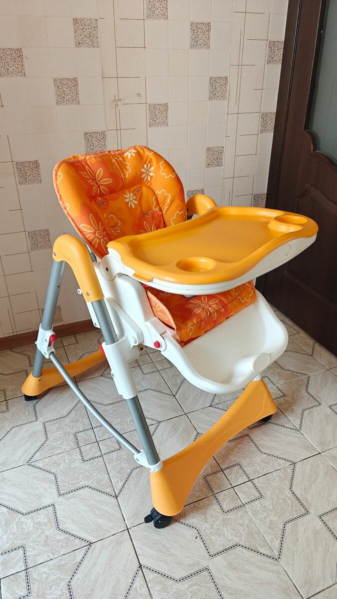 Срочно продаю стульчик для кормления. В отличном состоянии, все работает, на колесах есть тормоза чтобы зафиксировать. Сиденье можно поднимать и опускать до нужной высоты. Спинка регулируется. Ремешки только потеряли.