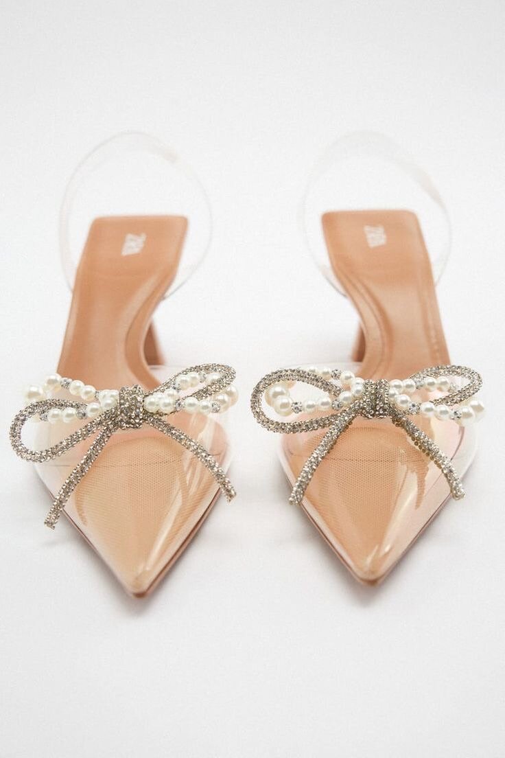 Zara Sling back high-heel shoes with a bow.