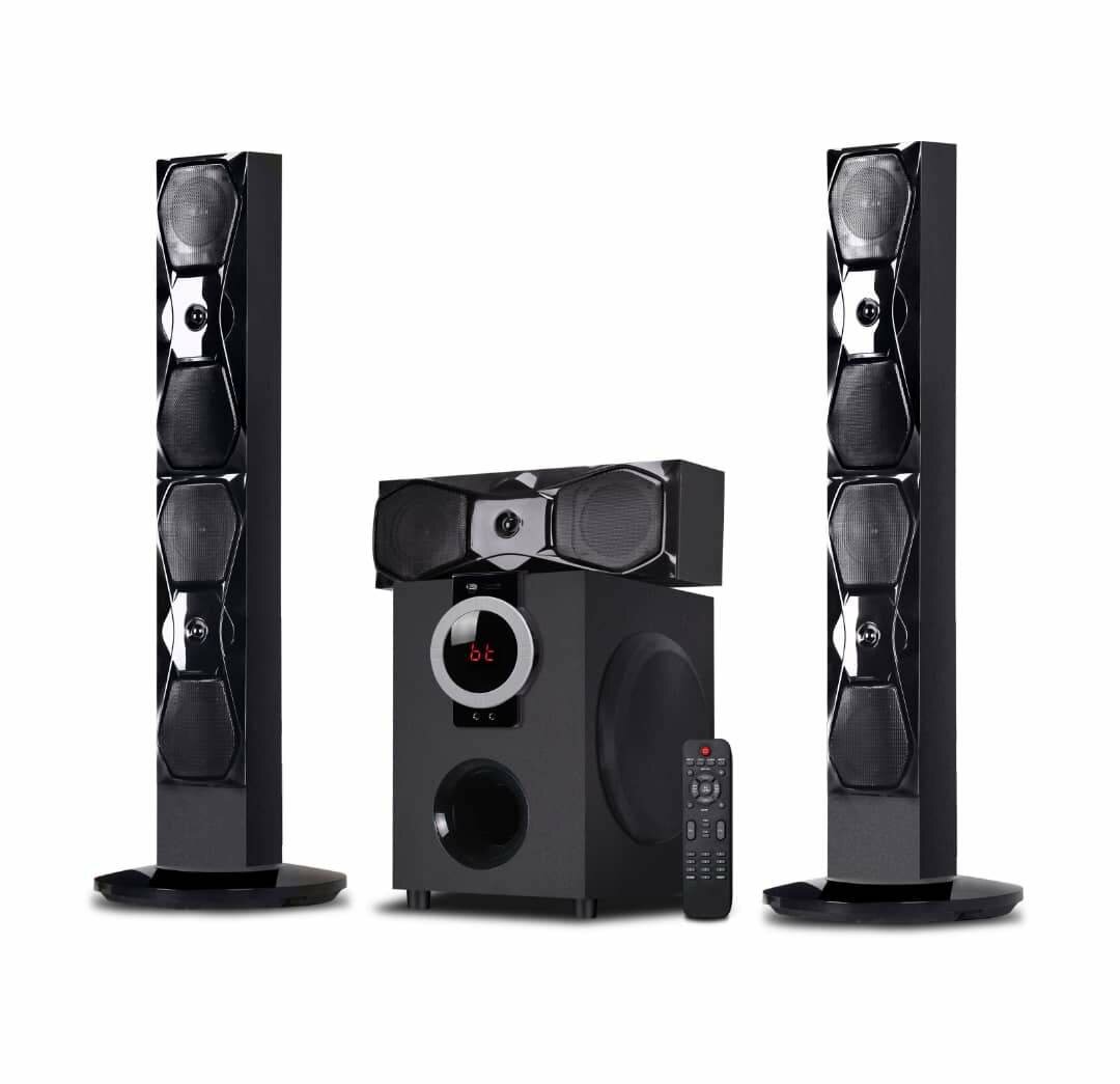 Enhance your home entertainment with this powerful speaker set. Featuring tall speakers for immersive surround sound, a subwoofer for deep bass, and a center speaker for clarity. Perfect for movies, music, and gaming. Easy setup with remote control included. Ideal for any living room setup.