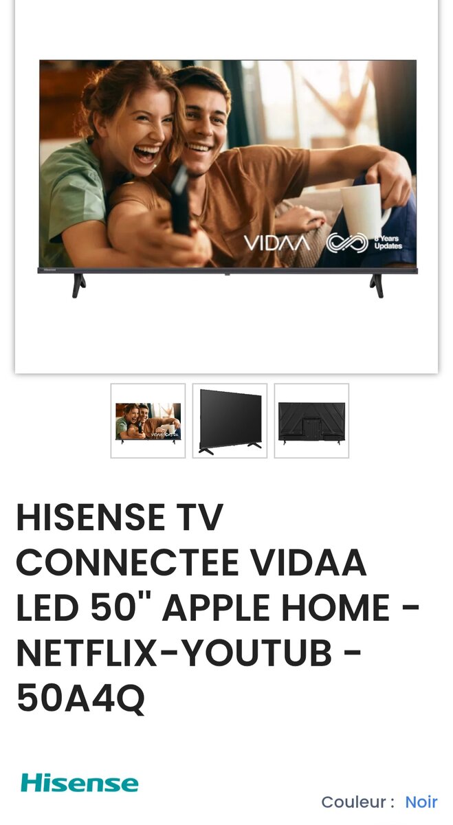 Profitez d'une expérience cinéma chez vous avec la TV Hisense LED 50". Compatible Apple Home, Netflix et YouTube, elle offre une qualité d'image exceptionnelle. Idéale pour les soirées en famille ou entre amis, elle transformera votre salon en centre de divertissement.