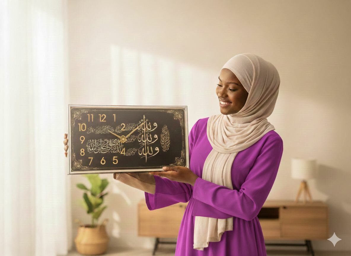 Découvrez cette magnifique horloge murale ornée de calligraphie arabe. Idéale pour ajouter une touche d'élégance et de culture à votre intérieur. Parfaite pour le salon ou le bureau, elle est à la fois fonctionnelle et décorative.