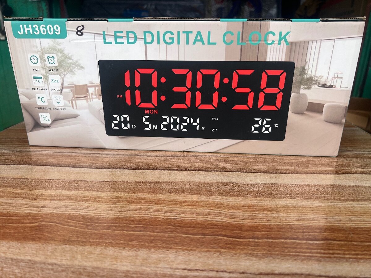 Découvrez l'horloge murale numérique LED JH3609, idéale pour votre salon ou chambre. Affichage clair de l'heure, de la date et de la température. Parfaite pour un usage quotidien.