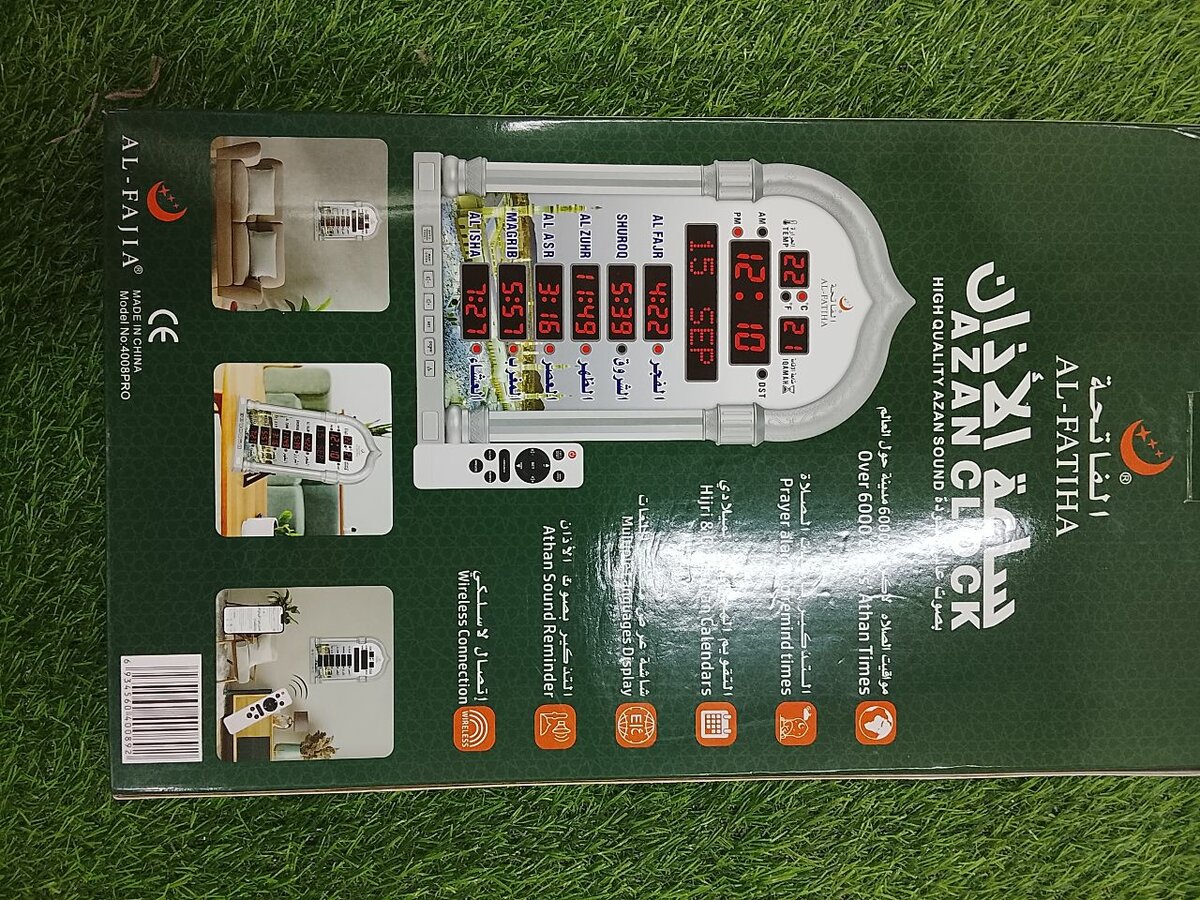 Cette horloge numérique élégante affiche les horaires de prière. Parfaite pour les foyers et les mosquées. Fonctionnalités faciles d'utilisation, idéales pour suivre les prières.