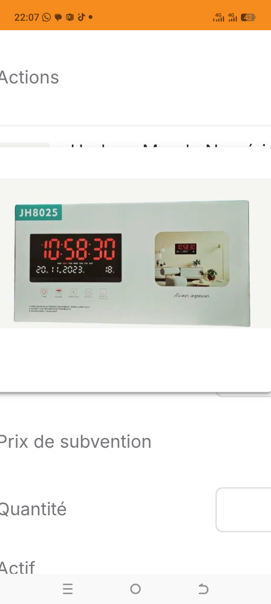 Lumière horloge murale disponible neuf bon prix