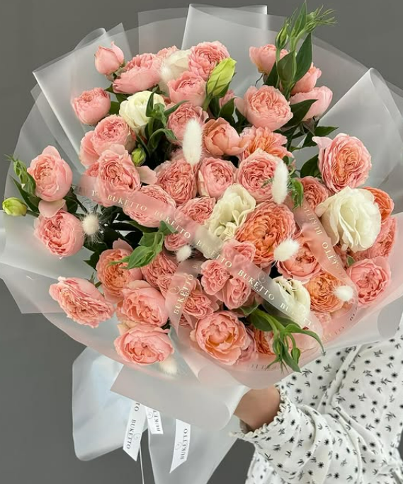 эстетичные букеты из пионовидных спрей роз