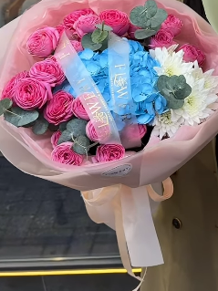 Состав: гортензия, пионовидные спрей розы, хризантема, эвкалипт