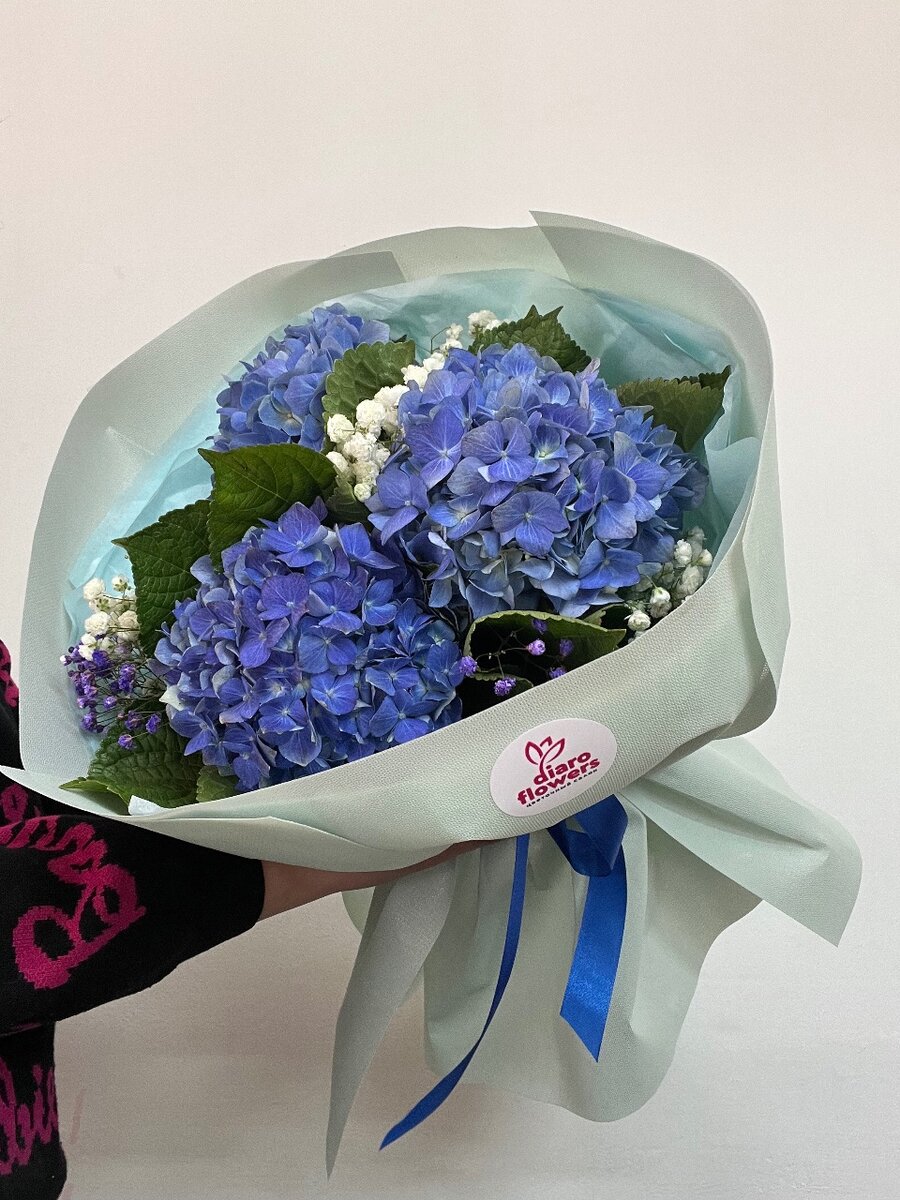Бюджетный вариант для поздравления - букет из гортензии и гипсофилы
