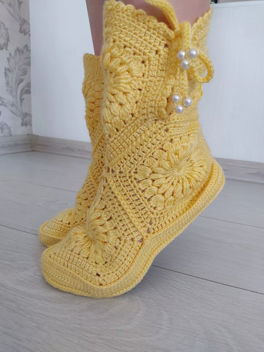 Домашние вязанные сапожки женские