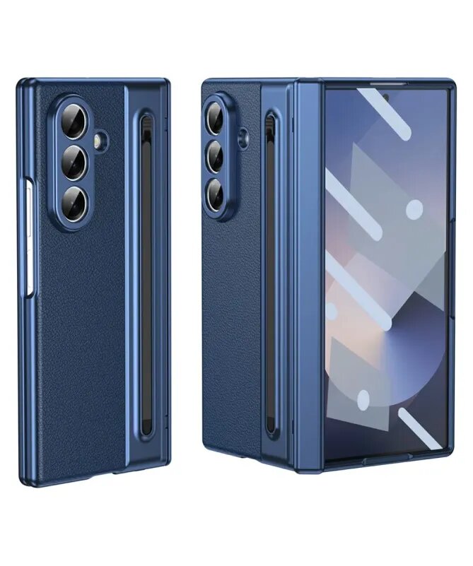 Protégez votre smartphone pliable avec style grâce à cette housse en cuir bleu avec support pour stylet. Résistante, elle offre une protection complète des charnières et permet une utilisation facile de votre appareil. Idéale pour les professionnels et les amateurs de technologie avancée.