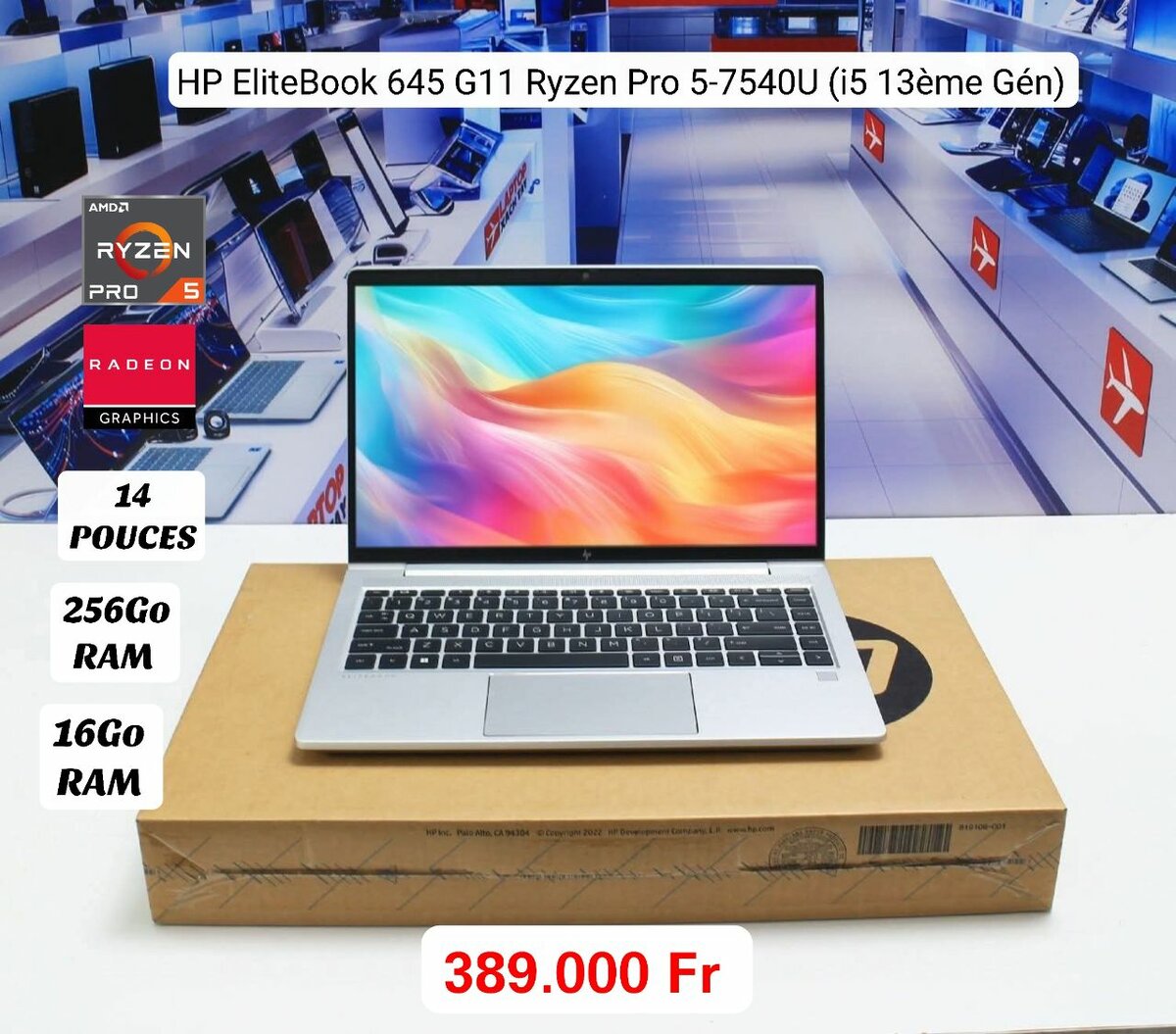 Découvrez le HP EliteBook 645 G11, équipé du puissant processeur Ryzen Pro 5-7540U. Avec ses 16 Go de RAM et 256 Go de stockage, ce laptop est parfait pour les professionnels en déplacement. Performance et élégance dans un écran 14".