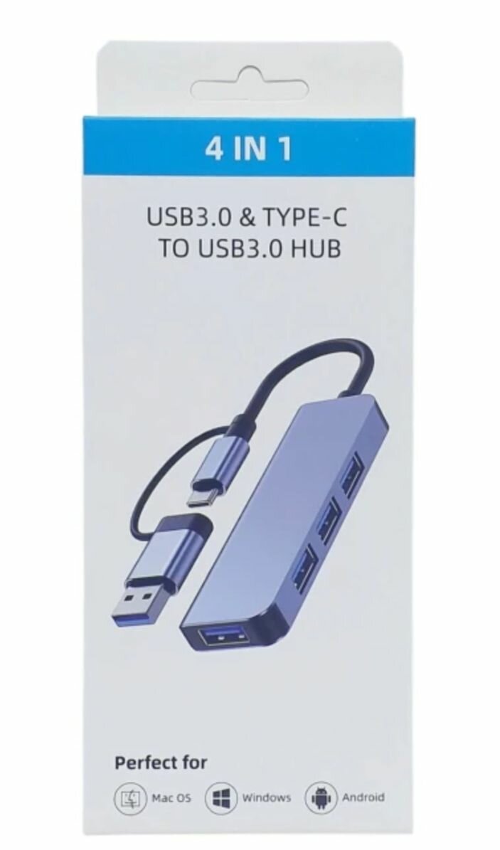 Connectez facilement tous vos appareils avec ce hub 4-en-1 USB 3.0 et Type-C. Compatible Mac OS, Windows, et Android, c'est un choix parfait pour les professionnels en déplacement.